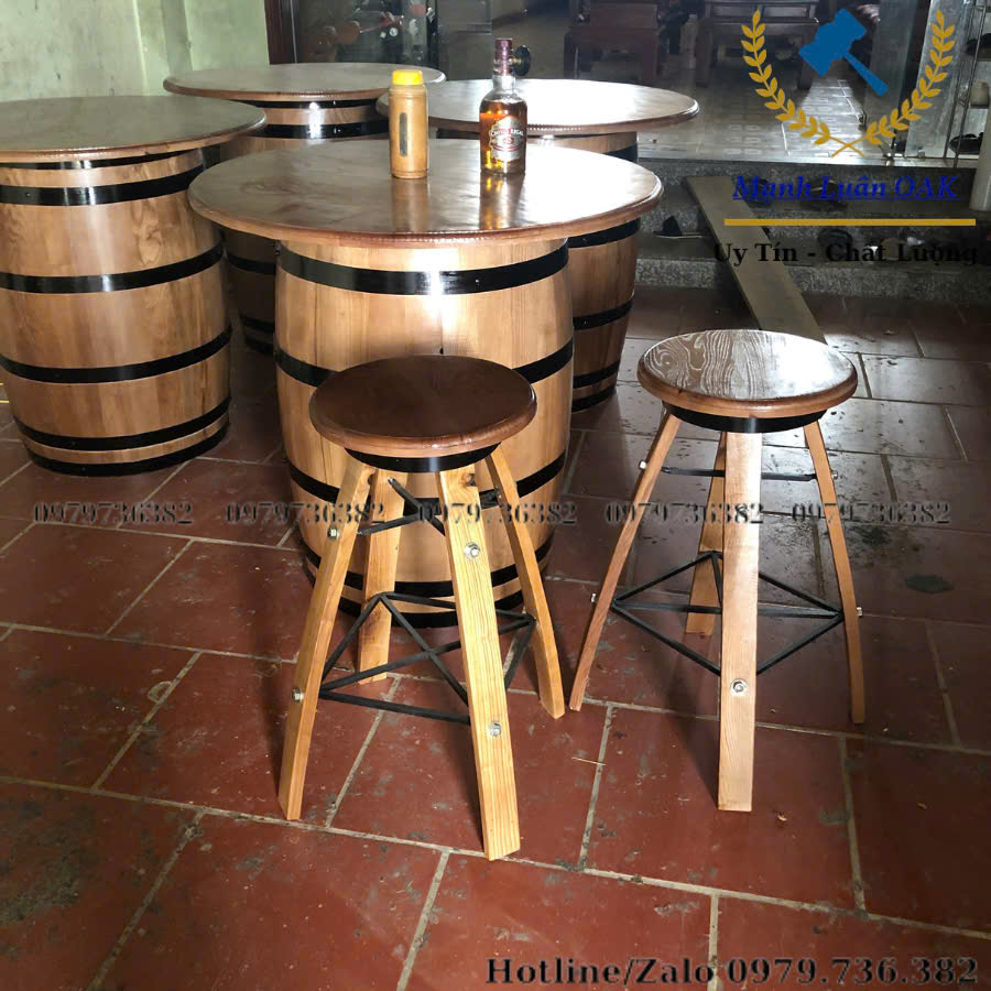 – Với các quán Cafe thì thông thường sẽ được sử dụng các bộ bàn ghế trang trí vì vậy mỗi chi tiết phải cẩn thận và tỉ mỉ. Với kiểu dáng thùng gỗ sồi có sẵn chỉ cần làm thêm một cái mặt lên trên nữa là thành một cái bàn hoàn chỉnh trang trí thêm một vài phụ kiện để sản phẩm ấn tượng hơn như đinh đồng chẳng hạn.
